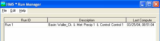 Close the Run Configuration window, go back to the Basin Model, and choose Simulate / Run Manager. You should see an image similar to this: which shows what files were used on this Run.