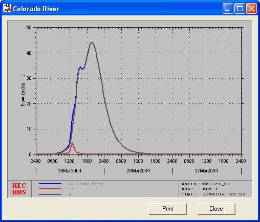 The light red hydrograph is the inflow data from the small area of Waller
