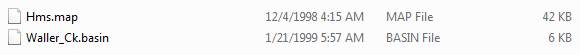 To run the HEC-HMS model for Waller Creek, a basin file is needed to specify the physical parameters of the watershed, and a map file to give the outline of the drainage areas and creeks. These files can be downloaded from here http://www.caee.utexas.edu/prof/maidment/CE374KSpring2011/HMS/waller.zip as a zip file. Make a working directory on your computer and extract these files (Waller_Ck.basin and hms.map) into it.