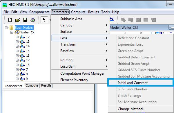 First Select Parameters/Loss/Initial and Constant, the Initial and Constant method is the only option available because is the method selected (if we want to change the method we can do it selecting Change Method… at the end of the list, and select one of the others methods listed)