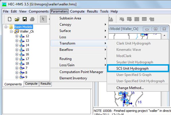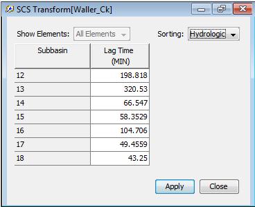 Note that the SCS unit hydrograph method requires only one parameter for each sub-basin--lag time between rainfall and runoff in the subbasin. HMS. At this point, go ahead and close this window.
