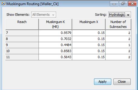 This should cause the following image to appear. This simulation routes the water through the reaches by the Muskingum method in which K is the travel time of a flood wave passing through the reach, X is a measure of the degree of storage (X = 0 means a level-pool reservoir or maximum storage, X = 0.5 means a pure transmission reach in which there are no storage effects, and X ranges between 0 and 0.5). The reach is divided into a number of subreaches if necessary to keep the computations numerically stable.