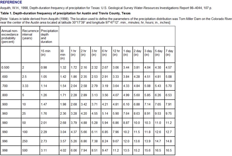 return period of the event and the duration of the rainfall. A table of