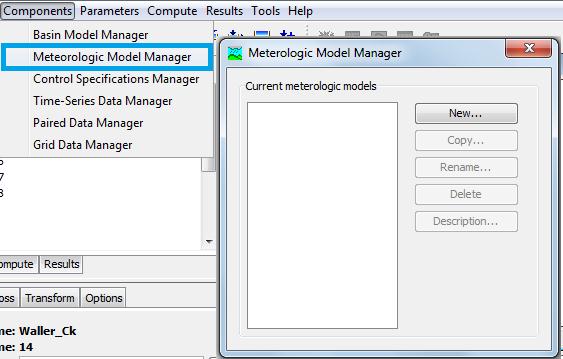 Project Window and select Component/ Meteorologic Model Manager/New. A window like
