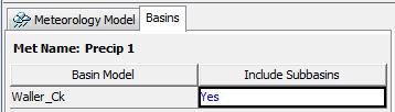 Select Basins tab and for the Waller_Ck Basin Model change the Include Subbasins options to yes.