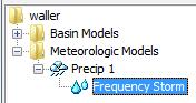 In the Data Panel, expand the options for Precip 1 and select Frequency Storm