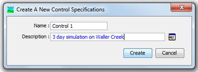 The final piece of the model setup involves establishing the model's time limits. Go back to the Top Menu and select Parameters/Control Specifications Manager/New.