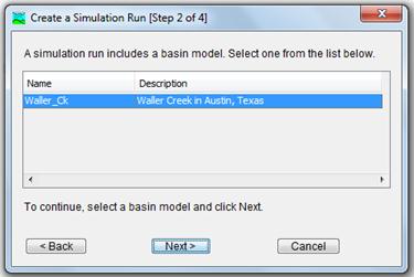 In the second step we select the Basin Model Waller_Ck (the