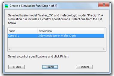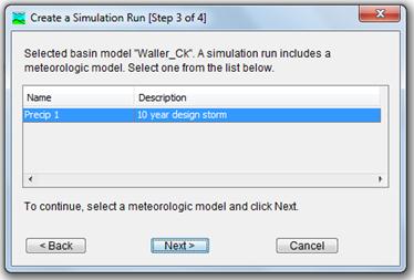 The third step corresponds to the Meteorological model, select Precip 1 and press next >