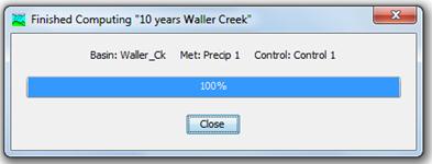 To run the model, go the Top Menu and Compute/Compute Run [Waller Creek 10 Year Storm]