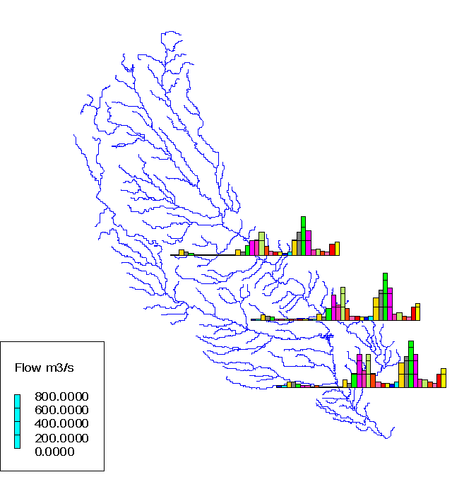 Figure 5.12 Monthly flow rate in the lower Cedar River in 1989-1991. Example of visual tools of ArcViev project "Flwprc" for hydrologic analysis.