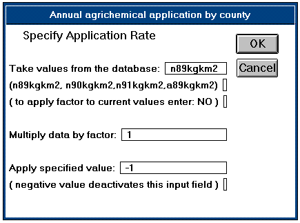 Figure 5.8 Example of the Graphical User Interface: a window for the selection of the agrichemical application rate in selected counties.