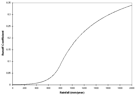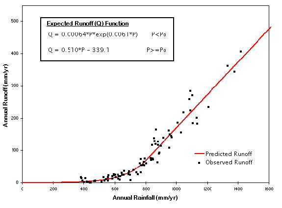 rainfall-runoff function by plotting mean annual runoff per unit