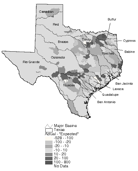 estimate might be too high. In the Sulfur River basin, the last