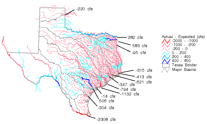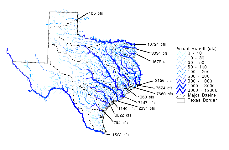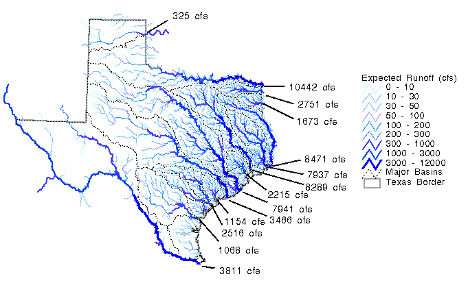 actual flows were calculated at each 500 m DEM cell in Texas and