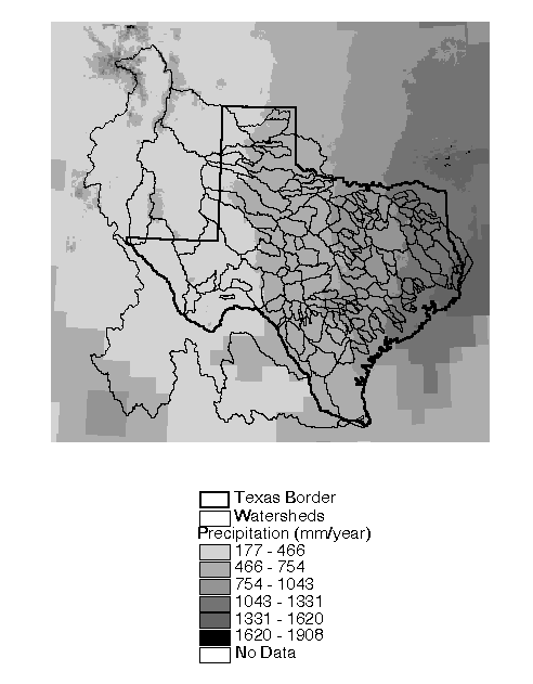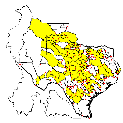 within or drains to Texas was clipped for use in this study.
