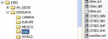 The Cities, Counties and States are polygon feature classes obtained from ESRIDATA, a standard set of shape files normally installed along with the ESRI software on the c:\ drive of a local computer.    The original cities and counties extent covers the whole US, but those for Louisiana, Mississippi and Alabama have been selected for this exercise.