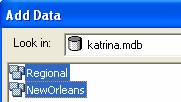Use the Add Data  button and select both the Regional and NewOrleans Feature Datasets to be added to the map: