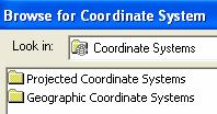 Click on the  button and in the Spatial Reference Properties window which appears, hit .  Choose Projected Coordinate Systems