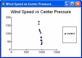 And in the last screen type Wind Speed vs Center Pressure as the title.  Here is the result.  Not too exciting.  Its not easy to edit Charts in ArcGIS 9.1 to get them looking nice.  This too will change in 9.2