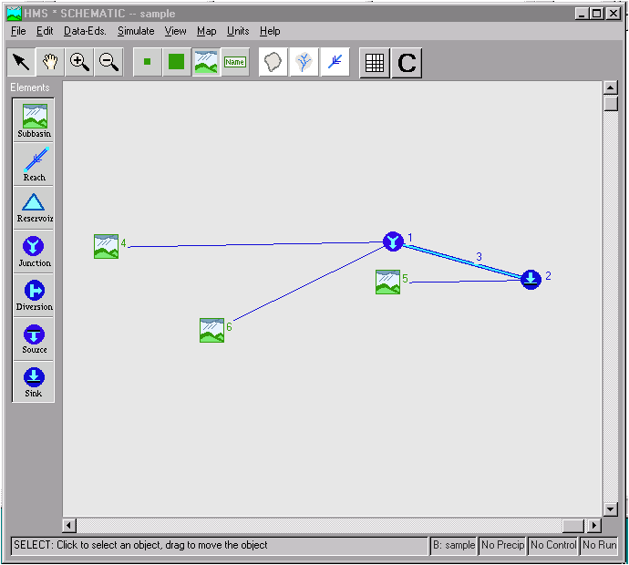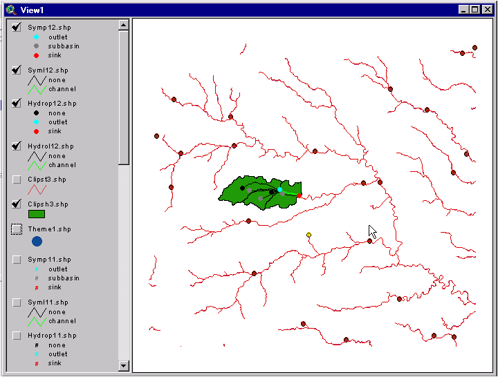 Having hidden the Symp and Syml themes, let's take a closer look at the piece of the view I chose to send to the HEC-HMS: