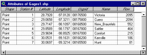 each gage as a new attribute in Arcview. Click on the Table icon in the Project Window and