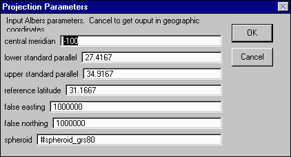 The values shown are the parameters for the Texas State Mapping System in the Albers projection.