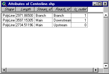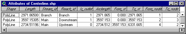 table of Centerline.shp looks like.