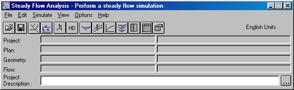 The first time you start HEC-RAS you will see the main project window, which looks like this: