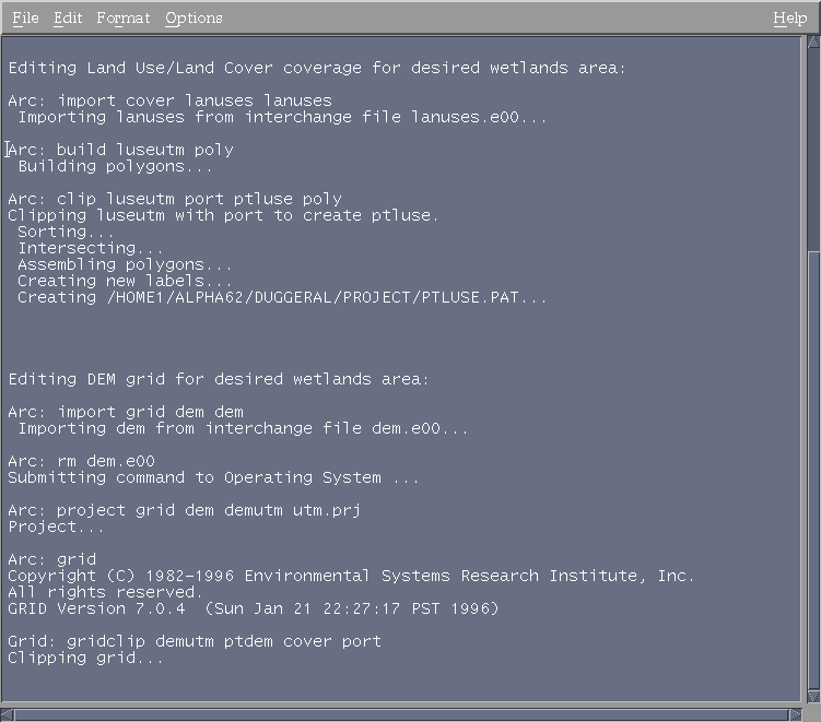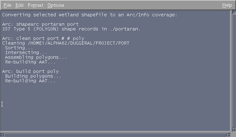 Sample Arc/Info Dialog for Isolating Wetland Types