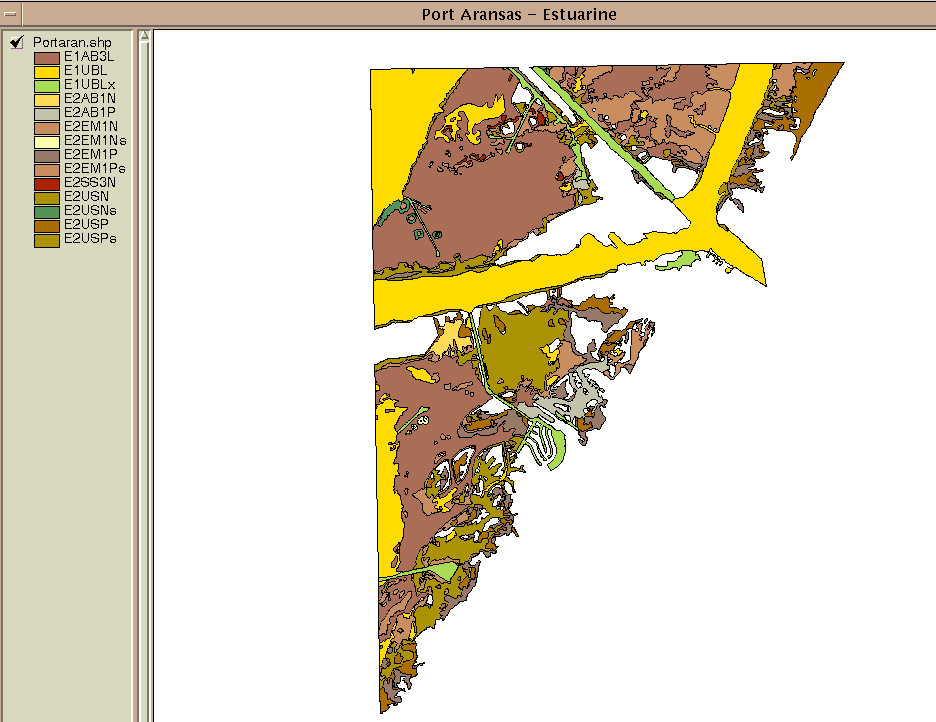 The above steps were performed on the Port Aransas quad, isolating only the Estuarine