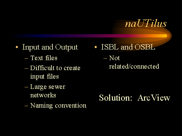 - Input files: Creating the naUTilus input file requires detailed knowledge of the input file format and the numbering system used by naUTilus. Creating the input file becomes particularly difficult with large sewer networks. The input file is a text file with various sections specifying branch, node, and drain data.
