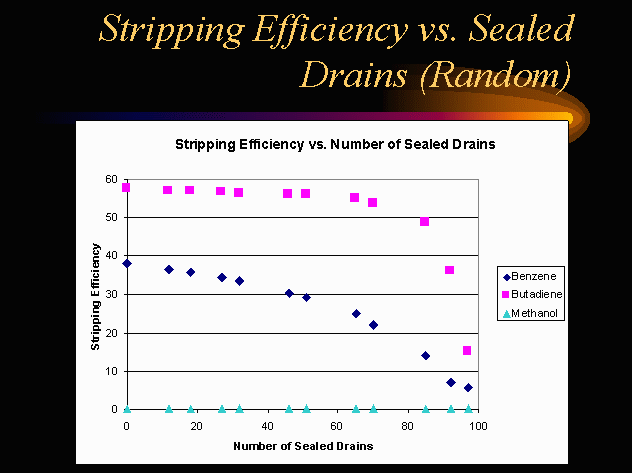The results shown above are for variations on the number of sealed drains. The ISBL unit has 97 drains, thus the number of drains approximates the percentage of drains.