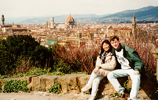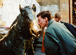 The Little Mermaid - Copenhagen, Denmark (left). Scott kisses the pig (okay, so it's a boar) in Florence. (right) |