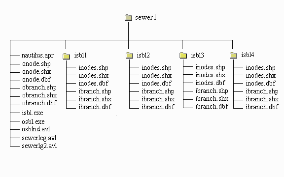 For the naUTilus/ArcView interface to run properly, your ISBL and OSBL must be stored in a specific manner. Create a main directory in which all of the files relating to a specific OSBL site are stored. Under this main directory, create a subdirectory for each ISBL unit associated with the OSBL unit. For OSBL and ISBL units, use the names at most 8 letters in length.