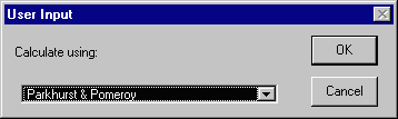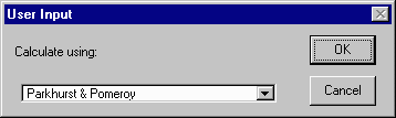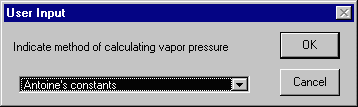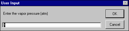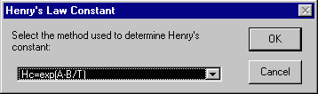 The first option ArcView will give you is the choice of methods in calculating the Henry's Law constant for your chemical. After choosing this method, you will be asked to provide the necessary values for this calculation (In this example, values for toluene are used).