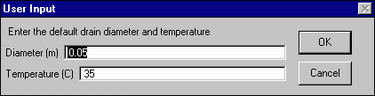You will also be prompted to enter a default drain diameter and temperature. These numbers will be used for all drains which you do not later modify.