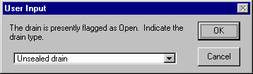 To confirm your change, ArcView will present a window indicating the present status of the drain (opened or closed).