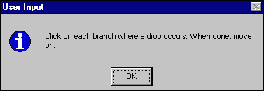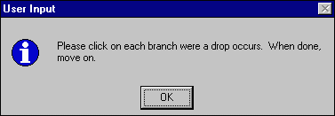You will then be asked to click on any branch at which a drop occurs. The branch associated with a drop is the branch with a drop at the terminal end. If you have no drops in your system or have completed this step, simply move on.