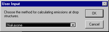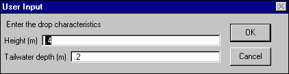 If you do have drop data to enter, simply click on the appropriate branch. You will be prompted for the height of the drop and the tailwater depth. Both values should be entered in meters.