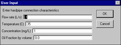 Click on a node where a hardpipe connection occurs and you will be prompted to enter the flow rate, temperature, concentration, and oil fraction of the flow through that hardpipe connection.