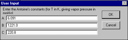 Method 1 requires that you enter the Antoine constants (A,B,C) for temperatures in Kelvin. This gives vapor pressures in mmHg.