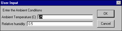 Enter the ambient temperature (oC) and relative humidity as a decimal (i.e. 0.5 = 50%). Hit OK.