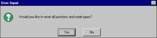 button in the toolbar. You will be asked if you would like to reset all junctions and nodes. The first time you work with your network, select Yes. After this first time, select yes only if you wish to set the nodes back to their defaults. Selecting no will allow you to edit individual nodes and junctions.