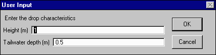 When you have selected a branch with a drop, you will be prompted for the drop height and the tailwater depth, both in meters. Enter these values and hit OK.