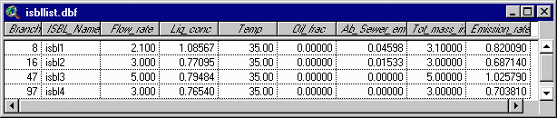 button, ArcView will open the table "isbllist.dbf". This table will show you, in the column titled "branch", if your ISBL units are already associated with any branch in the system. If they are not, you will see a zero value in this column. Otherwise, the number which appears is the branch number to which your ISBL flows.