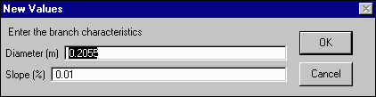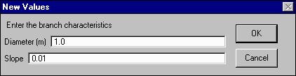 Click on branch 5. Replace the default value for diameter (0.75 meter) with the value 1.0 meter. Leave the default branch slope. Click OK.