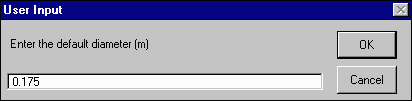 button again. This time, select the option "Reset to Default (2)". When prompted, enter a default diameter of 0.175 meters and hit OK. Enter a default slope value of 0.005 % and hit OK. Hit OK at the next prompt.