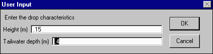 button. Click on branch 8. Enter a drop height of 0.15 meters and a tailwater depth of 0.4 meters, then hit OK.