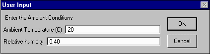 You will then be prompted to enter some ambient conditions. Enter an ambient temperature of 20 oC and a relative humidity of 40%. Hit OK.